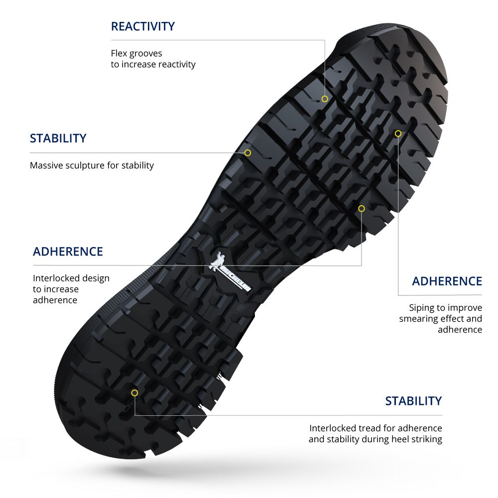 This outsole is the exclusive result of highly customized, solutions conceived matching and choosing the right compound, design and sculpture engineered for this specific fit for use.Â
