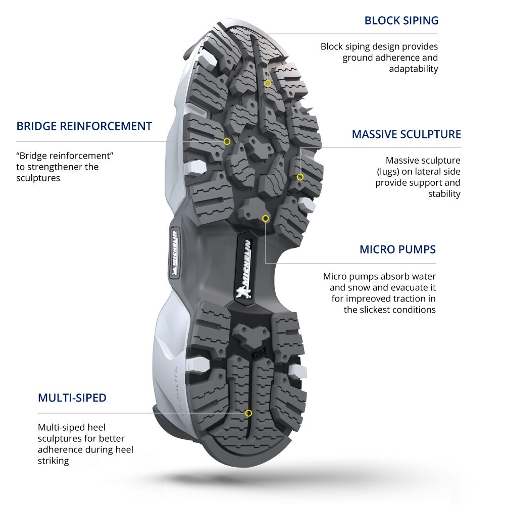 This outsole is the exclusive result of highly customized, solutions conceived matching and choosing the right compound, design and sculpture engineered for this specific fit for use.Â